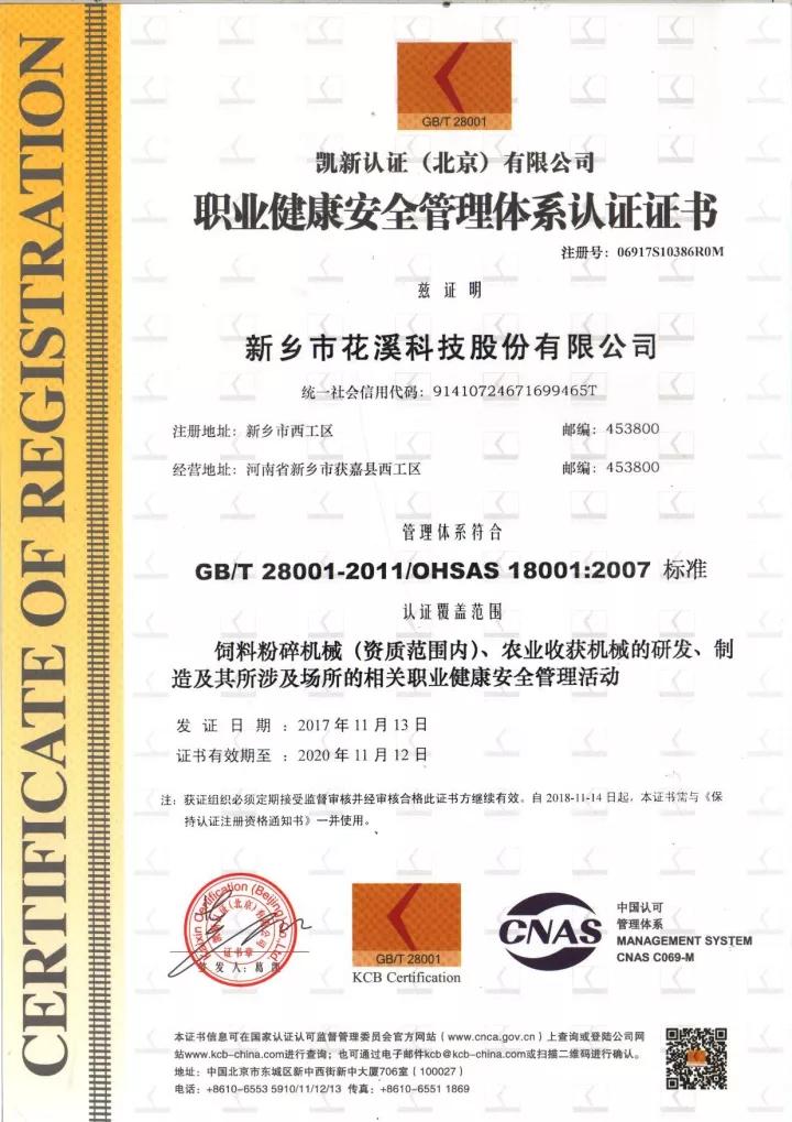 2017年11月13日,花溪公司獲得了環(huán)境管理體系(ISO14001)認(rèn)證證書和職業(yè)健康安全管理體系(OHSAS18001)認(rèn)證證書。